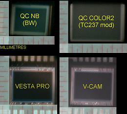 Comparatif destailles des différents capteurs vus à la même échelle :