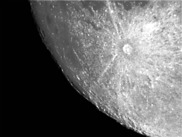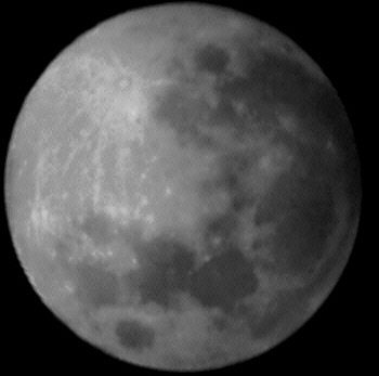 | Imge réalisée derrière un oculaire de de 20mm sur télescope 115/900 avec un tirant de qlq mm et avec l'objectif 4,8 de la WebCam. Cet oculaire permet avec une focale de 900 d'avoir le champ suffisant pour avoir la lune entière. | H. Faivre | |